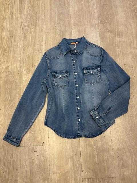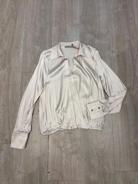 CAMICIA MANICA LUNGA CON POLSINO , CHIUSURA FRONTALE CON BOTTONI E ROUCHE CON DETTAGLIO GIOIELLO REMOVIBILE.